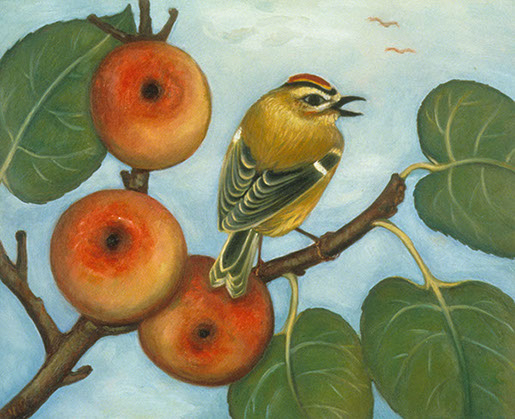 Yellow Bird and Cherries 6" x 6" oil on panel 1995