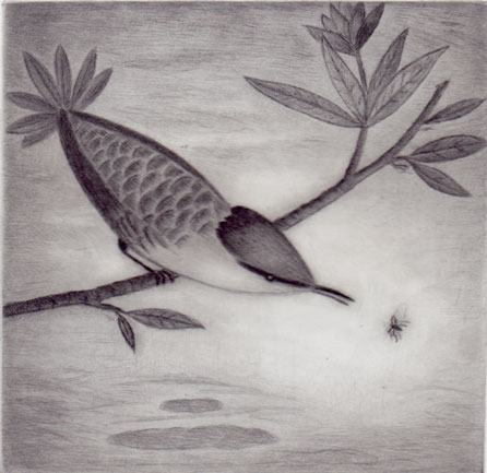 Evening Catch drypoint 4" x 4" 2004