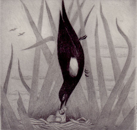 Marsh Feeding drypoint 4" x 4" 2001