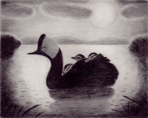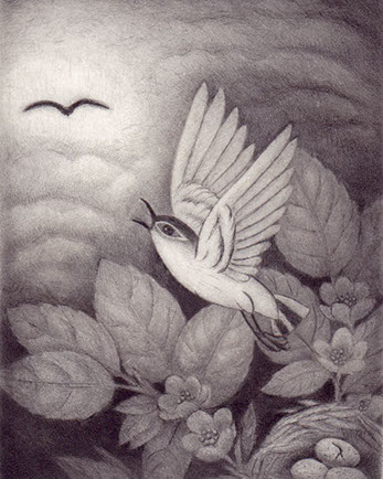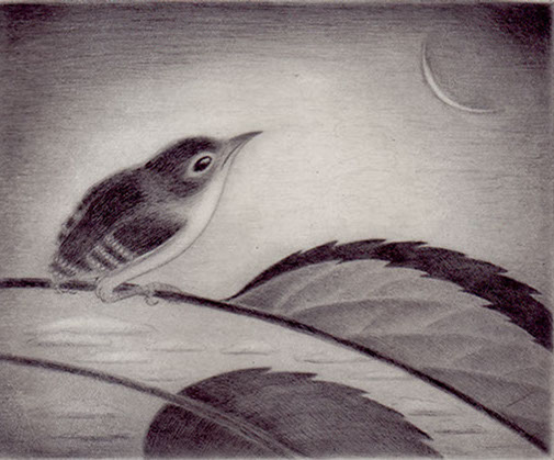 New Moon and Fledgling drypoint 4" x 5" 2005