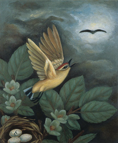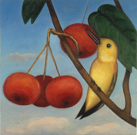 Yellow Bird and Cherries 6" x 6" oil on panel 1995